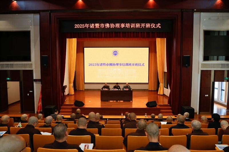 11月3日,2025年诸暨市佛协理事培训班在浙江佛学院雪窦山弥勒佛学院开班。诸暨市委统战部副部长、市民宗局局长陈飞,宁波市佛教协会副会长、雪窦寺监院持定法师出席开班式。开班式由诸暨市佛教协会会长方正法师主持。