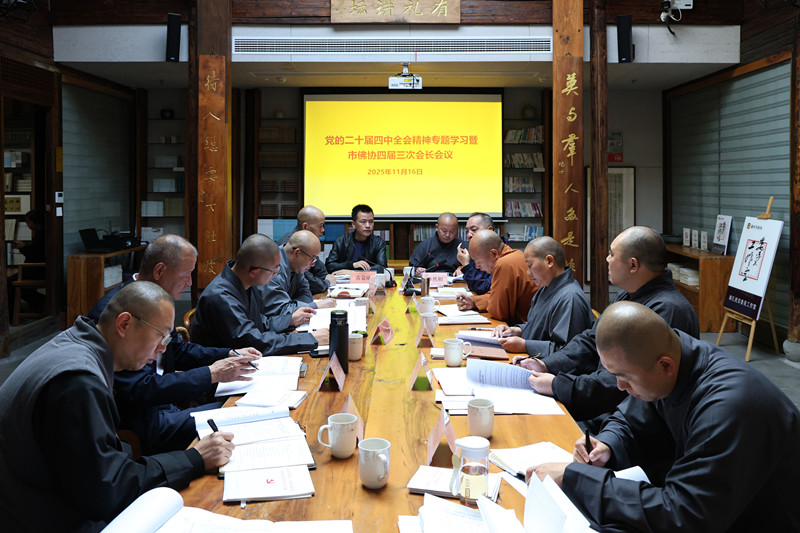 11月16日,衢州市佛教协会在宗教有礼园召开四届三次会长会议,专题学习党的二十届四中全会精神,并部署在全市佛教界开展“学法规、守戒律、重修为、树形象”教育活动。会议由会长然相法师主持。衢州市委统战部宗教工作一处处长雷翕勋出席会议。
