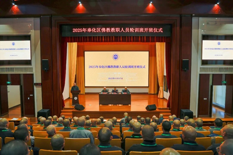 11月17日,奉化区佛教教职人员2025年第二期轮训班在浙江佛学院雪窦山弥勒佛学院开班。奉化区委统战部常务副部长、一级调研员康常军,宁波市佛教协会副会长、雪窦寺监院持定法师,奉化区佛教协会副会长真智法师出席开班式。